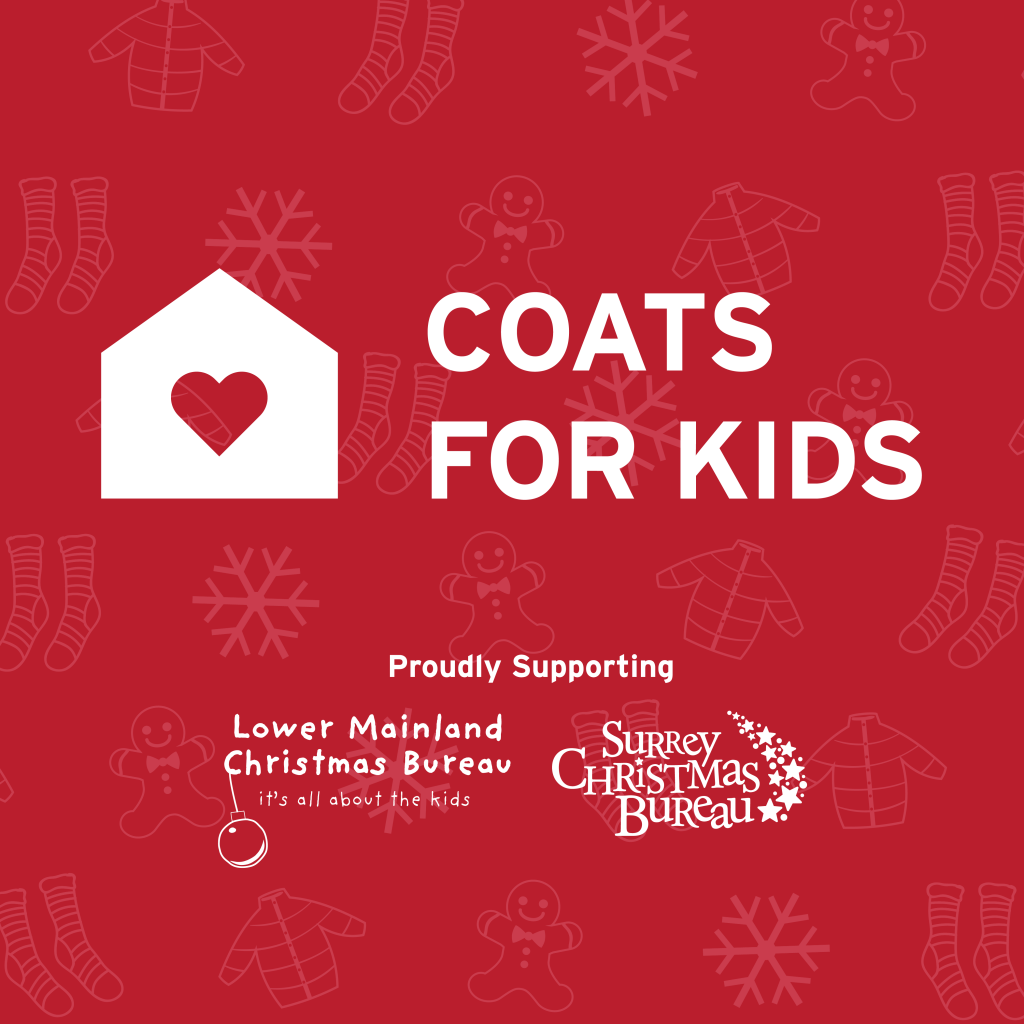 The campaign collects new and gently used coats, scarves, gloves, blankets, and new unwrapped toys and gifts for children of all ages for the Lower Mainland and Surrey Christmas Bureaus.